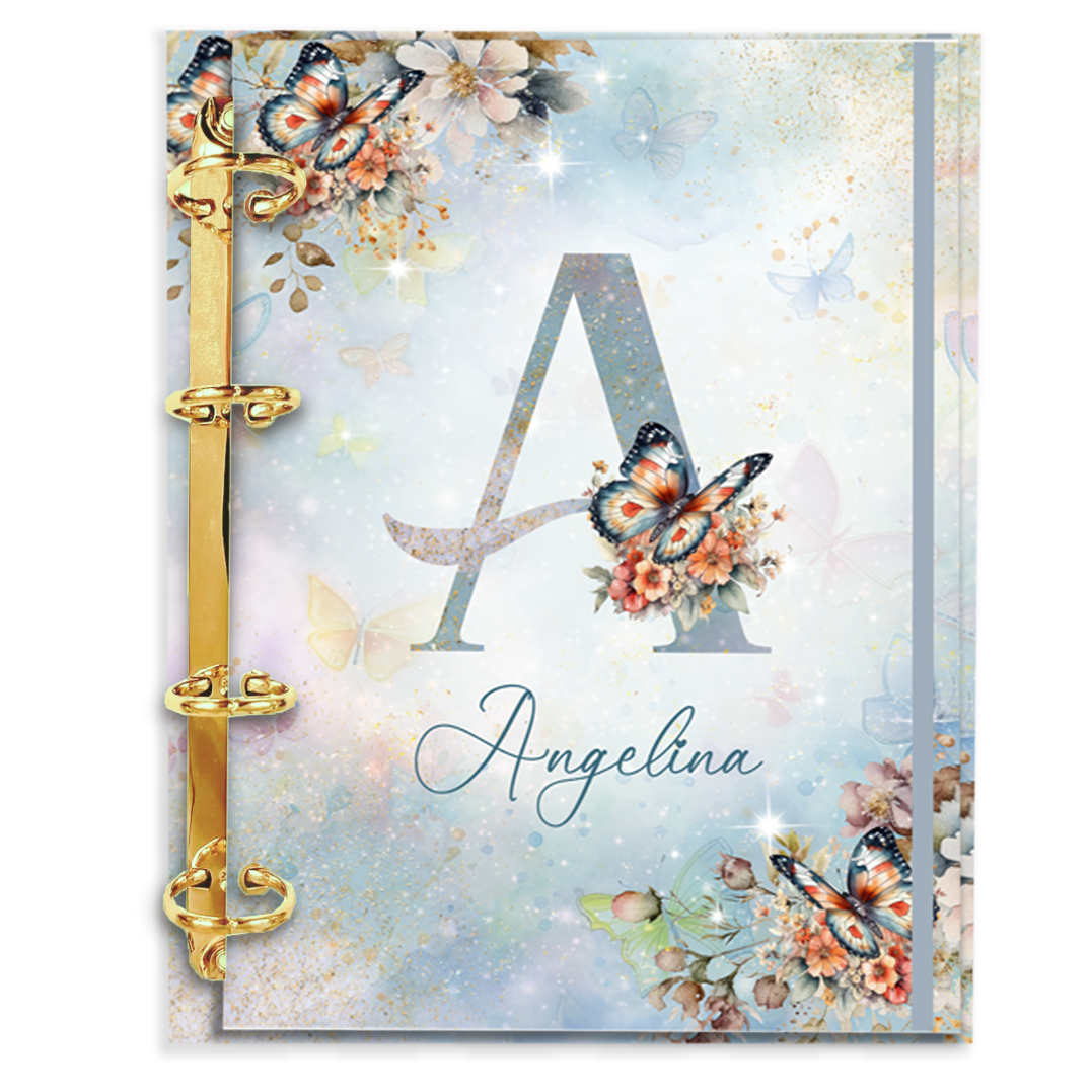 Agenda Fichário Personalizada Reposicionável: Inicial do seu nome - Azul Flores