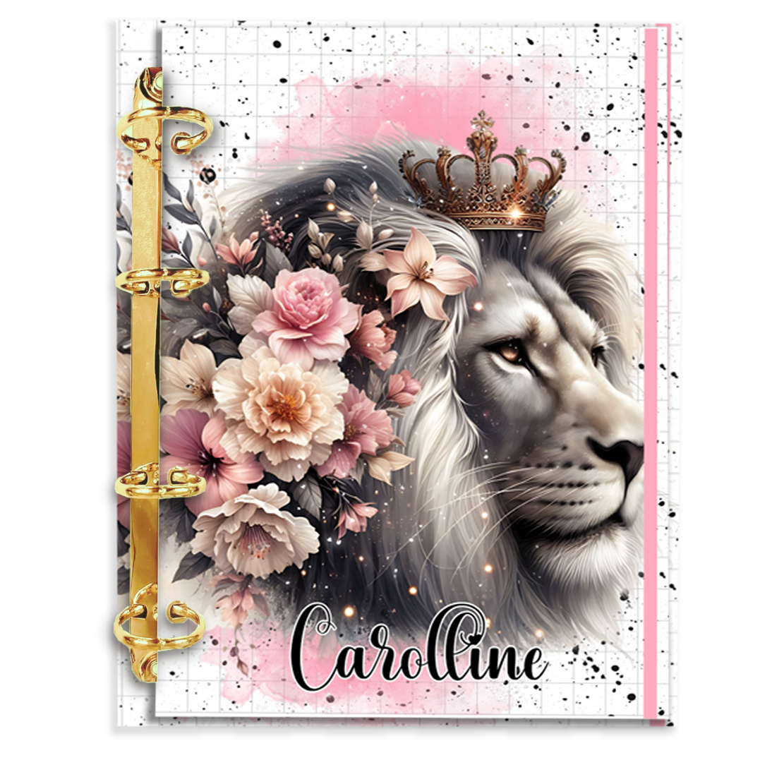 Agenda Fichário Personalizada Reposicionável: Leão Rosa