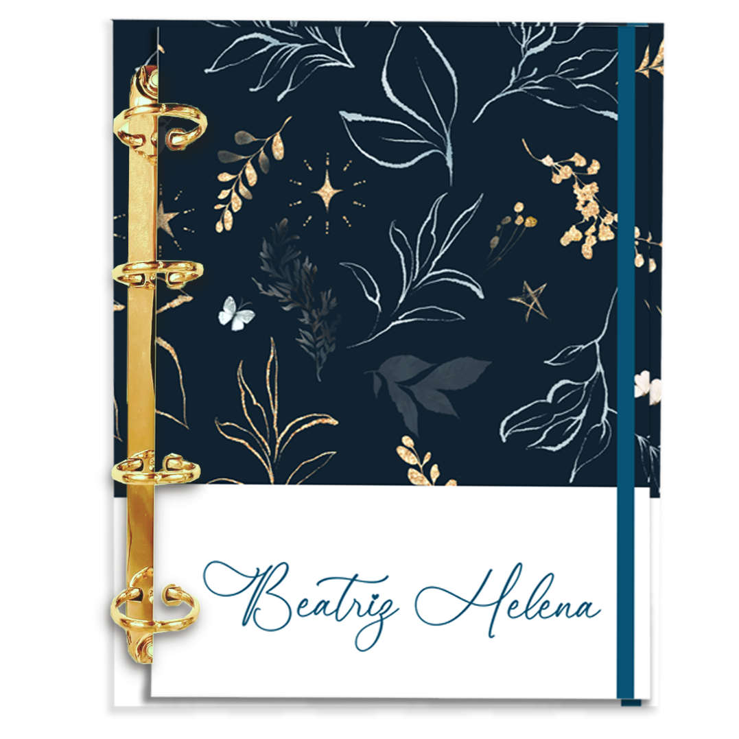 Itens como cantonera, capa holográfica, divisórias, bottons, refis e outros sugeridos estão disponíveis no campo "Compre também".  Adquira separadamente caso deseje incluir no seu pedido.  Garra dourada opcional +12,00