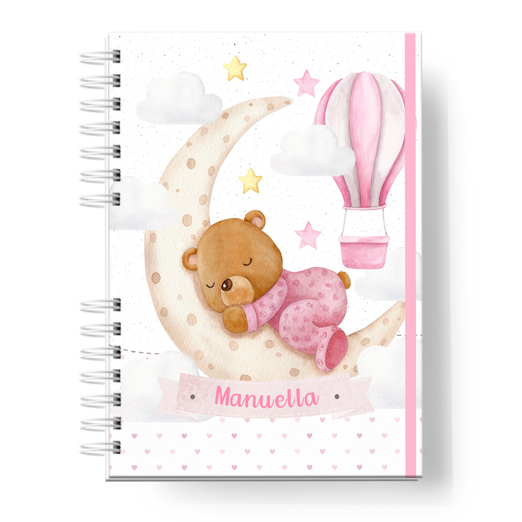 A parte interna possui caderneta de vacinas oficial do Ministério da Saúde atualizadabolso cangurudados do nascimento, páginas pautadas para anotações, anotações de consultas, medicações e acompanhamento de mêsvesários.