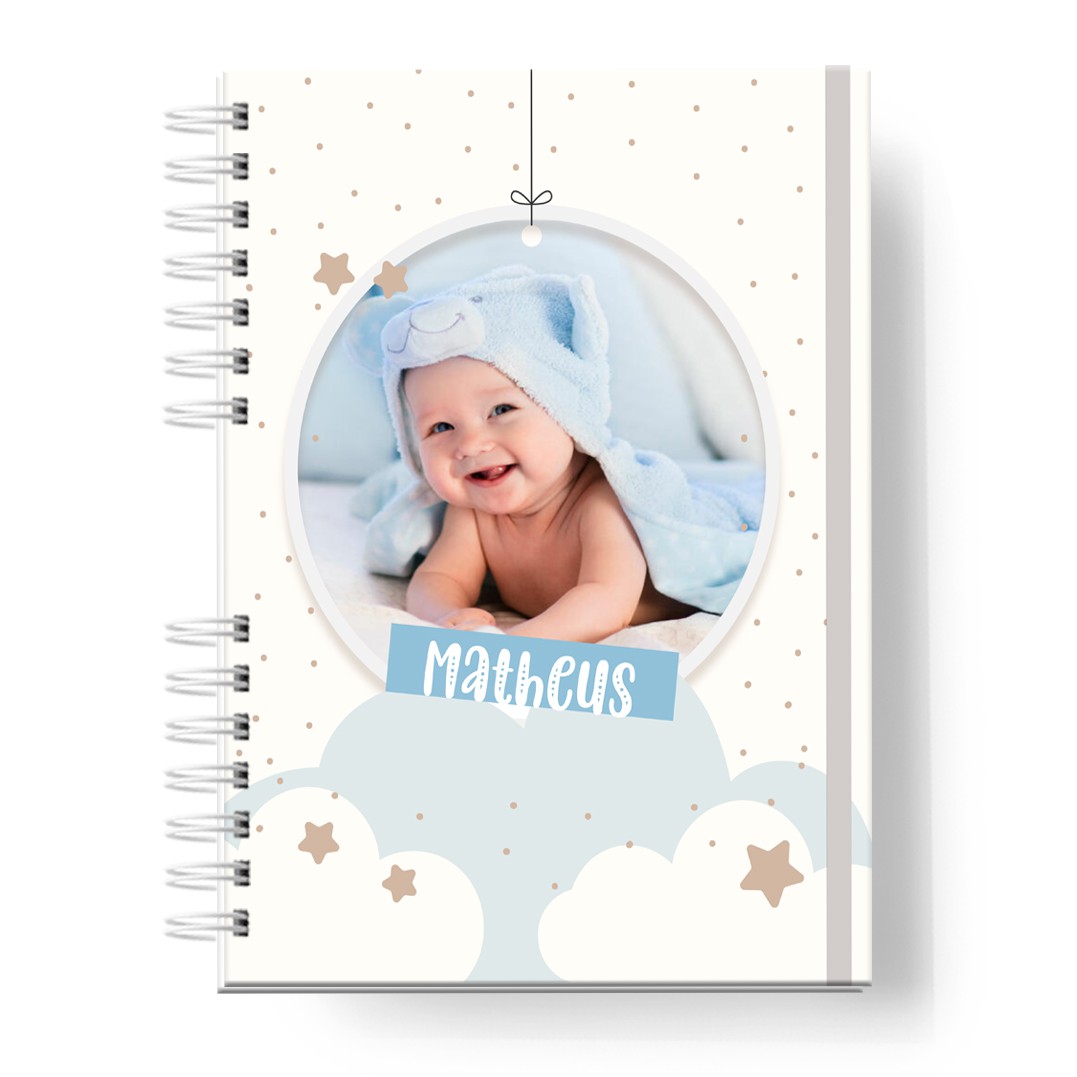 A parte interna possui caderneta de vacinas oficial do Ministério da Saúde atualizadabolso cangurudados do nascimento, páginas pautadas para anotações, anotações de consultas, medicações e acompanhamento de mêsvesários.