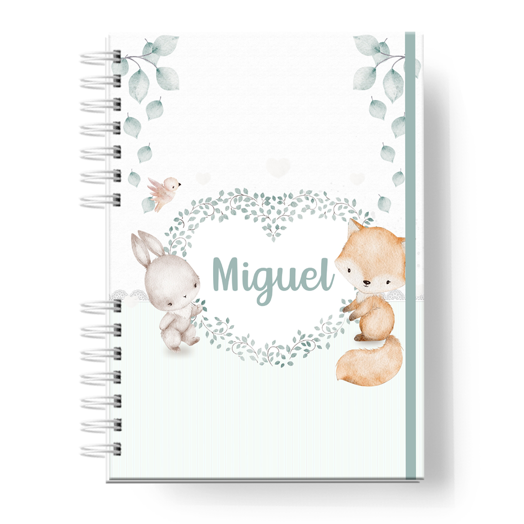A parte interna possui caderneta de vacinas oficial do Ministério da Saúde atualizadabolso cangurudados do nascimento, páginas pautadas para anotações, anotações de consultas, medicações e acompanhamento de mêsvesários.