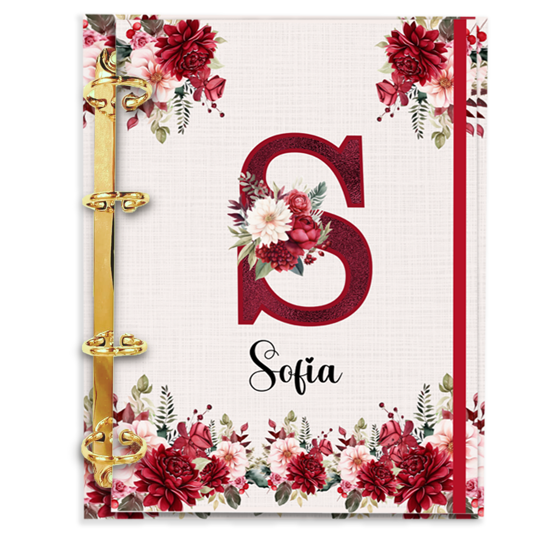 Fichário Personalizado Reposicionável: Coleção Alfabeto - Bege Vermelho