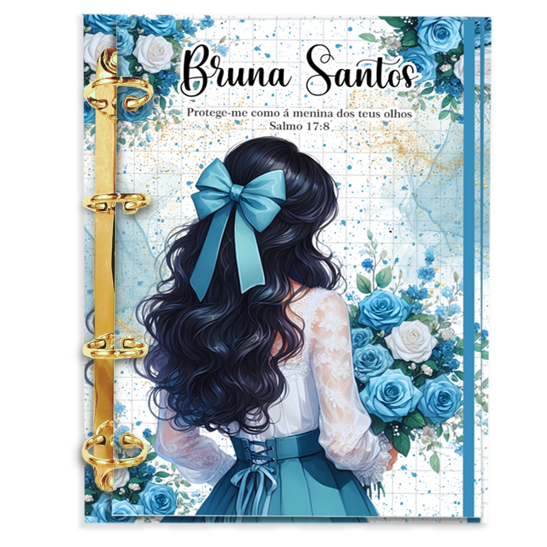 Fichário Personalizado Reposicionável: Cristã Menina Azul
