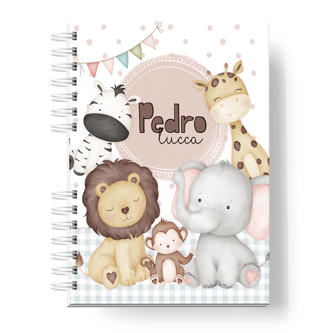 A parte interna possui caderneta de vacinas oficial do Ministério da Saúde atualizadabolso cangurudados do nascimento, páginas pautadas para anotações, anotações de consultas, medicações e acompanhamento de mêsvesários.