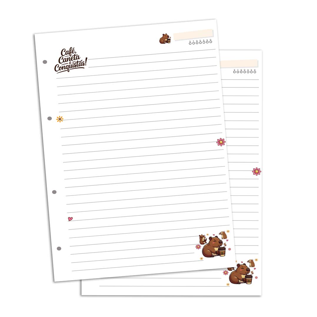 Refil de Fichário com 180 Folhas - Café, Caneta e Conquistas