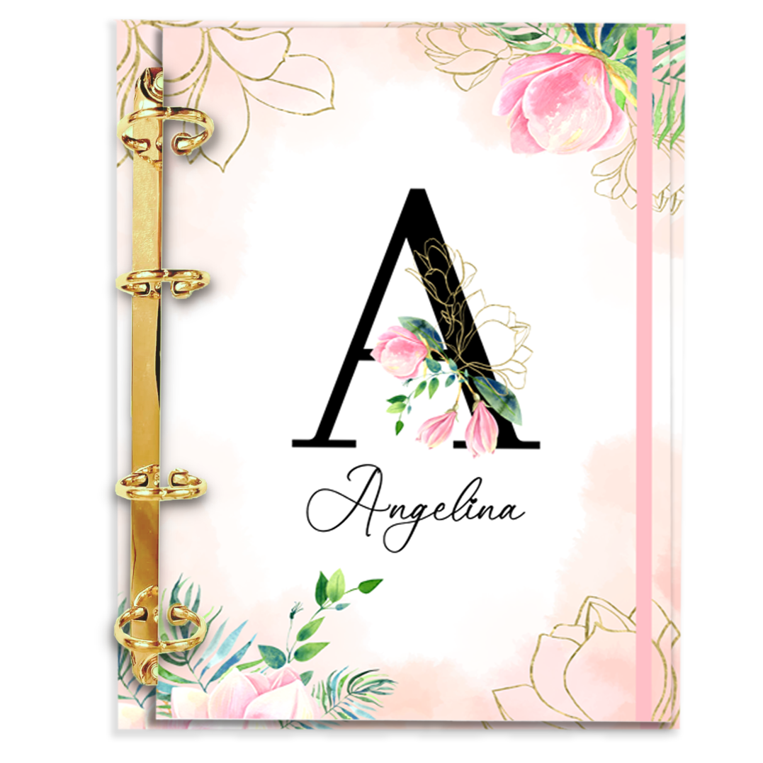 Agenda Fichário Personalizada Reposicionável: Inicial do seu nome - Floral Rosa 1